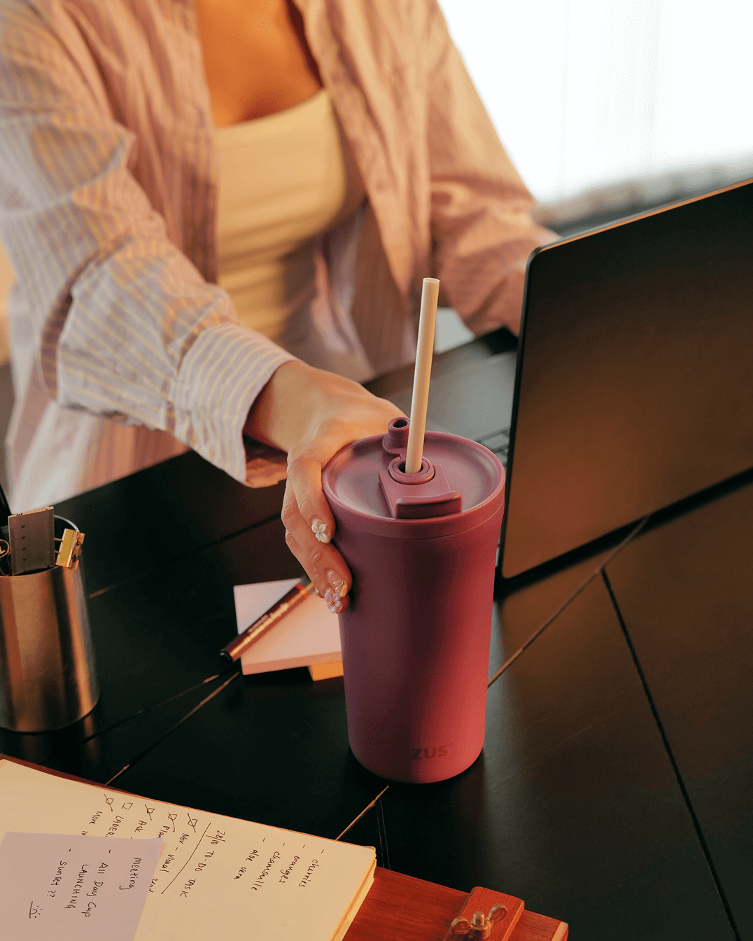 We’ve designed our All Day Cup to be as hassle-free as possible when cleaning! All you need to do is hand wash with soapy water using a sponge or brush to clean off any residue, then either leave to air dry or pat to dry. Super easy, right?